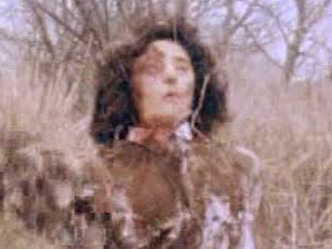 Meanwhile, down by a lonely riverbank, a ghastly thing that was once a woman sits up in a shallow grave.— HPL, The Colour out of Space ![]() This might come as a surprise to anybody who's come to the story "cold", without having read "The Thing on the Doorstep". In fact, it's Asenath's body. Edward Derby, after being sedated in Arkham Asylum, has suddenly re-awakened in the corpse of the woman he killed... while miles away, Asenath has taken permanent residence in his body. This is the big moment of Lovecraft's tale: when poor Derby, imprisoned in the decaying body of Asenath, manages to scrawl a letter to Upton explaining everything, and then drags himself to Upton's house to deliver it before finally falling to bits on the front porch. You know: the Thing... on the Doorstep. Without a Thing on the Doorstep, the story loses its climax. Our first problem here is that Asenath's body, being dead less than a day, is much too fresh to be in the shape it needs to be in to capture the full horror of the story. Sure, Asenath's remains look worse than we might expect; but she might have been in the car when Edward set fire to it (which leaves us to guess how she got buried)... that could explain why the Thing that site up in its grave is so badly deteriorated. But this bring us to another problem: the corpse doesn't look much like Asenath. The fact that it's a crude puppet prop is only half the difficulty here: the body's all wrong. If the viewers are not already familiar with the story, and expecting the body to be Asenath's, they're going to be totally lost at this point: