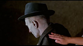 (Note, please, that in Mattei's version the diarist says they couldn't rescue the sailors because the fog had lifted...!) Sharon's reading is accompanied by some additional theft: "flashback" footage from a couple of completely different films, one of which looks like it's a classic High Seas adventure from the 1940s. But all this pilfering still isn't the craziest example of out-and-out robbery that Mattei demonstrates in the course of the movie. Sure, we're used to Mattei stealing bits of other people's movies, to the point where I started hallucinating resemblances between the Grim Reaper scenes and Richard Elfman's 1980 cult film Forbidden Zone — I know there's no real connection, but I can't help singing "Minnie the Moocher" under my breath every time I see those scenes: |