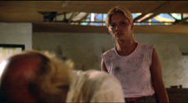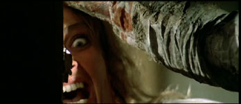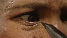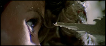 Not only is this a shot-for-shot repeat of the scene in Hell of the Living Dead, Mattei had re-used the same gimmick at the end of the original movie:![]() ![]() ![]() There's also a moment when Fred turns into Santoro from Hell..., charging crazily into the middle of the zombie horde, challenging the undead to take a bite of him. He even offers them his arm, like a particularly tasty buffalo wing. Unfortunately, Fred is no Santoro. While Franco Garofalo's character survived his mad encounter with the living dead, Fred gets himself eaten. It's bad enough ripping off Bruno Mattei in your zombie film — even if you are Bruno Mattei — but you can still go one step lower. Bruno being Bruno, this is precisely what he did. If there is one iconic moment in zombie movie history, one exquisitely managed and original moment of graphic horror that can never be imitated, it's Olga Karlatos's infamous eyeball scene in Fulci's Zombie 2. For sheer squirm-inducing discomfort, this scene has rarely been equalled. Mattei had already stolen from Fulci earlier in Island of the Living Dead, so I really didn't expect him to go back to Fulci later on... and I never expected him to go back specifically to that scene. After all, once Mattei stopped working with Claudio Fragasso in 1990, the amount of really over-the-top gore in his movies went way down; and earlier, in The Tomb (2006), he'd tiptoed coyly away from showing actual on-screen eyeball violence. But just take a look at this: |