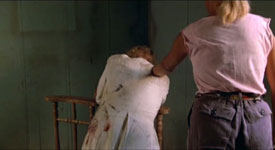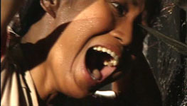 (Note, please, that in Mattei's version the diarist says they couldn't rescue the sailors because the fog had lifted...!) Sharon's reading is accompanied by some additional theft: "flashback" footage from a couple of completely different films, one of which looks like it's a classic High Seas adventure from the 1940s. But all this pilfering still isn't the craziest example of out-and-out robbery that Mattei demonstrates in the course of the movie. Sure, we're used to Mattei stealing bits of other people's movies, to the point where I started hallucinating resemblances between the Grim Reaper scenes and Richard Elfman's 1980 cult film Forbidden Zone — I know there's no real connection, but I can't help singing "Minnie the Moocher" under my breath every time I see those scenes: |