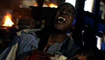 And yet — after all that buildup, referencing one of horror's most infamous sequences — Mattei still misses the point of Fulci's original by having Yvette Yzon's Sharon be rescued at the last moment. That's right: the man who gave us a scene of Evelyn Margit Newton's eyes being poked out from behind her skull in Hell of the Living Dead pulls the punch here. It's all tease, no penetration. But perhaps I've said enough about what's wrong with Island of the Living Dead. It's about time I mentioned the things that go right... because as hard as it may be to believe, there are a few. For example, there's a mildly effective moment when Sharon and Fred are forced to make their way through a corridor piled with long-inert zombies. The creatures have been left alone for 300 years — some of them have been eaten by rats in the interim — so they're fortunately very slow to awaken. Even when they do wake up, they're still suffering under two disadvantages: first, they're stiffer than usual from the inactivity. Second, many of them have been chained to the wall, so the best they can do is lean and snarl. Still, it's a reasonably creepy moment. It would count as a modest success... except for the fact that Mattei repeated a large chunk of this sequence as a flashback — over and over again — in Zombies: The Beginning. The other effective moment that comes to mind is when Snoopy finds himself confronted by a flamenco-dancing ghost, who steps out of her painting like a Murgatroyd ancestor in "Ruddigore". It's not the flamenco-ghost sequence that works so well... good grief, no. That's impossibly stupid. The ghost dances around Snoopy flirtatiously, and Snoopy, against all common sense, decides what the hell? and follows her. Of course, she immediately turns into a vampire zombie and kills him. But the part of this sequence that really succeeds is the occasional, creepy glimpse we get of the zombie lutenist — yes, lutenist — who plays the music for her: ![]() And overall, I have to admit that Island of the Living Dead looks as good as any shot-on-video horror film of recent years, while its pace and story flow are (as usual for Mattei) surprisingly energetic. The story itself is dumb, as dumb and derivative as anything Mattei ever filmed with Fragasso... but it's a lot more fun than the average modern DTV zombie film. Maybe the best comparison for Bruno Mattei isn't Marcel Duchamp after all. Maybe he's closer in spirit to PDQ Bach, the fictional Baroque composer invented by Peter Schickele, who was so lacking in originality that he even plagiarized music that hadn't been written yet. PDQ Bach is brilliantly sophisticated comedy pretending to be stupid; you really can't say the same thing about Mattei movies. But I get the feeling sometimes that the very last Mattei/Paolucci collaborations — even if they weren't intended as pure parody — were deliberately exaggerated to poke fun at Mattei's own history. Island of the Living Dead was Mattei's second-to-last film. In a sane universe, it would have been his last film, but he was able to make a sequel — Zombies: The Beginning — just before he died. The sequel, in typical Mattei style, had more to do with other people's movies than it did with the flick it was supposed to be based on; what's more, though it was called "The Beginning", it was to be the second film in a proposed trilogy. Mattei died before the last movie was even begun, but Paolucci has stated he'd like to go on and make the third film anyway. The mind boggles at the thought of a posthumous Bruno Mattei film, but fortunately we don't have to worry about that right now. The cultural landscape has changed significantly over the last quarter century, and it's a much different thing today for someone to make a Bruno Mattei-style film than it was when Mattei was getting started. Twenty-five years ago, when something as wretched as, say, Hell of the Living Dead was released — to theaters, remember, since there was no such thing as direct-to-video — nobody ever dreamed that we'd still be watching it and discussing it after the turn of the millennium. The origin of Mattei's "style" was the age-old tradition of cashing in on a currently-popular trend as cheaply as possible, tricking enough people into seeing the film before the terrible word-of-mouth killed it, and then moving on to the next project. By contrast, the Mattei movies of the new century were made to cash in on the existence of Mattei movies in the past. The funny thing is — Mr. Paolucci, please take note — only Mattei could get away with making a Bruno Mattei movie. OK, OK: technically Jordan B. Matthews, Gilbert Roussel, Frank Klox, David Hunt and this film's credited director, Vincent Dawn, could also make a convincing Bruno Mattei movie, but that's only because they (and so very many others) were Bruno Mattei. The SyFy Channel and The Asylum may be giving him a run for his money in the Stupid department, but when it comes to sheer, ballsy theft, nobody does it like Bruno. It's strange to think that a director so well-known for his lack of originality should turn out to be one of a kind, but that's just another part of his inexplicable charm. ![]() The Saga Continues: read about Zombies: The Beginning in my earlier review. More Braino at Bruneater... er, Bruno at Braineater: The Tomb The Other Hell Zombie Creeping Flesh/Hell of the Living Dead Zombie 3 Terminator II: Shocking Dark [ Back to Main Page ] |